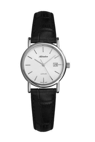Damski zegarek A3159.5213Q marki Adriatica wyposażony w szwajcarski mechanizm kwarcowy ETA F04. Stalowa koperta płynnie łączy się ze srebrną tarczą na której czas wskazują subtelne srebrne wskazówki i indeksy. Model wykonano w klasie szczelność 5 ATM oraz wyposażono w szafirowe szkło odporne na zadrapania oraz zarysowania. Całość opina czarny skórzany pasek. Szerokość koperty 30 mm, grubość koperty 7 mm, waga 30 g