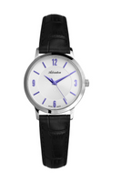 Damski zegarek A3173.52B3Q marki Adriatica wyposażony w szwajcarski mechanizm kwarcowy Ronda 763. Stalowa koperta płynnie łączy się ze srebrną giloszowaną tarczą na której czas wskazują subtelne niebieskie wskazówki i indeksy tworząc ten zegarek wyjątkowo czytelnym. Model wykonano w klasie szczelność 3 ATM oraz wyposażono w szafirowe szkło odporne na zadrapani...Damski zegarek A3173.52B3Q marki Adriatica wyposażony w szwajcarski mechanizm kwarcowy Ronda 763. Stalowa koperta płynnie łączy się ze srebrną giloszowaną tarczą na której czas wskazują subtelne niebieskie wskazówki i indeksy tworząc ten zegarek wyjątkowo czytelnym. Model wykonano w klasie szczelność 3 ATM oraz wyposażono w szafirowe szkło odporne na zadrapania oraz zarysowania. Całość opina czarny skórzany pasek. Szerokość koperty 32 mm, grubość koperty 7 mm