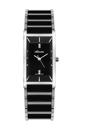 Damski zegarek A3397.E114Q marki Adriatica wyposażony w szwajcarski mechanizm kwarcowy Ronda 762. Koperta i część bransolety wykonana ze stali szlachetnej. Ogniwa bransolety wypełnione zostały ceramiką koloru czarnego która odporna jest na zadrapania i zarysowania niestety trzeba chronić ją przed silnym uderzeniem. Na czarnej tarczy czas wskazują srebrne wskazówki i...Damski zegarek A3397.E114Q marki Adriatica wyposażony w szwajcarski mechanizm kwarcowy Ronda 762. Koperta i część bransolety wykonana ze stali szlachetnej. Ogniwa bransolety wypełnione zostały ceramiką koloru czarnego która odporna jest na zadrapania i zarysowania niestety trzeba chronić ją przed silnym uderzeniem. Na czarnej tarczy czas wskazują srebrne wskazówki i indeksy. Dodatkową ozdobą tarczy są cztery cyrkonie. Model wykonano w klasie szczelności 3 ATM oraz wyposażono w mineralne szkło. szerokość koperty 25 mm, grubość koperty 9 mm, waga 78 g