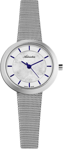 Zegarek wykonany ze stali szlachetnej, z klasą szczelności 30M. Szkło utwardzone. Wewnętrzna część tarczy wykonana jest z masy perłowej, wskazówki z indeksami są w kolorze granatowym.