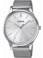 Zegarek damski Casio LTP-E140D-7AEF z kolekcji Retro. Koperta została wykonana z wysokiej jakości stali szlachetnej odpornej na warunki atmosferyczne. Połączono ją z modną bransoletą, którą tworzy gustowny splot stalowych włókien. Jasna tarcza idealnie komponuje ze stalowymi indeksami co sprawia, że jest przejrzysta i czytelna. Zegarek został wyposażony w dokładny mechanizm kwarcowy zasilany baterią. Ten model jest odporny na zachlapania.