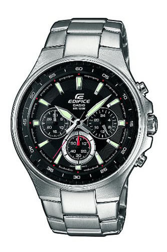 o ∅ 43 mm. Sferyczne, mineralne szkiełko. Indeksy i wskazówki pokryte substancją iluminującą. Klasa szczelności 100m...Stalowy chronograf z mechanizmem kwarcowym. Stalowa koperta