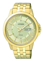 Męski zegarek BF2011-01EE marki Citizen wyposażony w japoński mechanizm kwarcowy z datownikiem. Koperta oraz bransoletka wykonane ze stali szlachetnej pokryte zostały ozdobną powłoką w kolorze żółtego złota. Na złotej giloszowanej tarczy czas wskazują wskazówki pokryte substancją iluminującą. Model wykonano w klasie szczelności 5 ATM oraz wyposażono w mineral...Męski zegarek BF2011-01EE marki Citizen wyposażony w japoński mechanizm kwarcowy z datownikiem. Koperta oraz bransoletka wykonane ze stali szlachetnej pokryte zostały ozdobną powłoką w kolorze żółtego złota. Na złotej giloszowanej tarczy czas wskazują wskazówki pokryte substancją iluminującą. Model wykonano w klasie szczelności 5 ATM oraz wyposażono w mineralne szkło. szerokość koperty 41 mm, grubość koperty 9 mm, waga 113 g