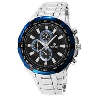 Tarcza: Analogowa. Małe zegary stanowią funkcję ozdobną. Imitacja chronografu.