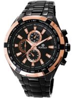 Tarcza: Analogowa. Małe zegary stanowią funkcję ozdobną. Imitacja chronografu.