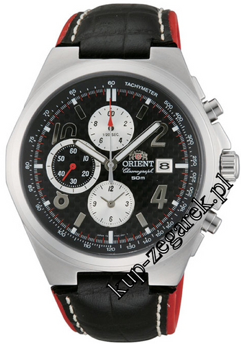 Zegarek z wyraźnie podkreślonym sportowym charakterem. Chronograf z tarczą z włókien węglowych. Dekiel zakręcany. szerokość koperty z koronką 46 mm długość , bez uszu 42mm