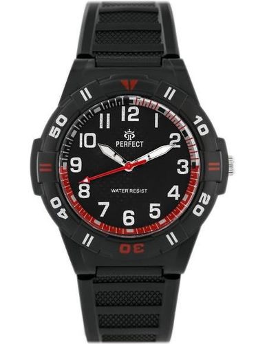 Zegarek męski PERFECT A920: Zegarek męski Perfect model A920 wyposażony został mechanizm kwarcowy, koperta oraz pasek zostałą wykonana z tworzywa sztucznego. Wodoszczelność na poziomie WR oznacza iż zegarek nie jest wodoszczelny. Mechanizm: W zegarku osadzony został mechanizm kwarcowy. Pasek/bransoleta: Tworzywo sztuczne. Koperta: Tworzywo sztuczne. Szkiełko: Akrylowe. Tarcza: Sygnowana logiem producenta. Wodoszczelność: Water Resist zegarek nie może być zanurzany w wodzie. Kolorystyka: Tarcza: kolor czarny, Wskazówki: kolor srebrno-biały, Koperta: kolor czarny, Bransoleta: kolor czarny. Gwarancja: Pisemna 12 miesięcy. Wymiary: koperta: 41 x 46mm, średnica tarczy: 29mm, szerokość paska: 22/18mm, długość całości: ok. 244mm.