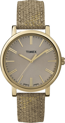 Zegarek Timex idealnie wpasowujący się w kolorowe trendy. Koperta w kolorze złotym, dekiel ze stali nierdzewnej. Całość opasa skórzany pasek w kolorze ziemi.
