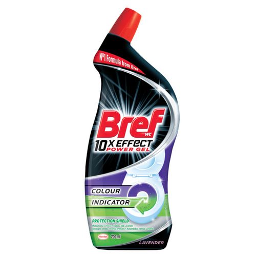 Bref WC 10x Effect Gel Protection Shield silny środek do WC z mocą 10 funkcji, skutecznie usuwa plamy, brud, rdzę i kamień, dezynfekuje oraz odświeża i czyści muszlę WC zarówno powyżej, jak i poniżej linii wody. Dzięki gęstej formule utrzymuje się nawet na pionowych powierzchniach muszli. Rezultat to zdezynfekowana, perfekcyjnie czysta muszla i fantastyczna świeżość w toalecie. Nowa formuła zmiany koloru po zetknięciu żelu z wodą. Formuła ochronna.