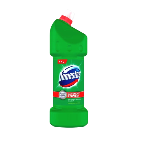 Nowy Domestos Przedłużona Moc to następna generacja chlorowych płynów z aktywnymi cząsteczkami zapobiegającymi osadzaniu się kamienia, które przylegają do powierzchni toalety nawet poniżej linii wody, by usuwać plamy i pomagać zapobiegać osadzaniu się kamienia.