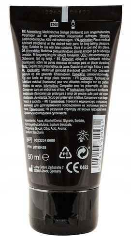 Smar na bazie wody o zapachu malinowym i aromacie do masażu i / lub seksu oralnego.