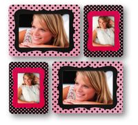 Opakowanie, które właśnie kupujesz zawiera 1 sztukę zestawu 4 ramek Easy KROPKI dopasowanego do zdjęć formatu 7×10 i 10×15 cm.
