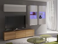 Zestaw składa się z 4 elementów: szafki wiszącej C02, szafki RTV C04 oraz dwóch witryn wiszących C05.