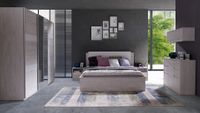 Zestaw składa się z 6 elementów: komody D02, łóżka D06, 2 szafek nocnych D11, szafki wiszącej D12 oraz szafy przesuwnej D14.