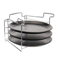 Zestaw do pieczenia pizzy składający się ze stojaka oraz 3 okrągłych blach o średnicy 30 cm.