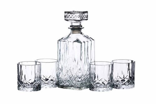 Zestaw do whisky, karafka i 4 szklanki marki Kitchen Craft. Komplet wykonany jest z ciętego szkła. Szlachetny napój będzie się w nim doskonale prezentował. Szczelność korka zapewnia plastikowa uszczelka, która zapobiega utracie aromatu.