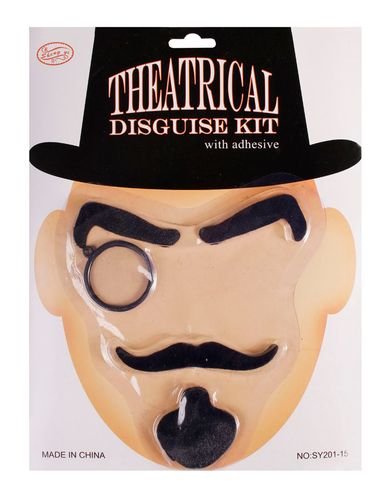 Zestaw składa się z samoprzylepnych brwi, wąsów i bródki oraz monokla na sznureczku.
