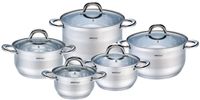 10-cio elementowy zestaw garnków wykonanych z wysokiej jakości stali nierdzewnej posiada wielowarstwowe dno, dzięki czemu lepiej trzymają ciepło. Uchwyty odporne są na nagrzewanie. Można stosować na wszystkich rodzajach kuchenek: gazowej, elektrycznej, ceramicznej, szklanej, halogenowej czy indukcyjnej. Na ściance skala pomiarowa. Można myć w zmywarce.