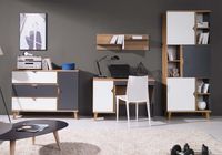 Zestaw składa się z 4 elementów: regału M02, biurka M06, komody M07 oraz półki wiszącej M10.