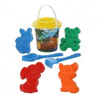 W Zestawie znajduje się: wiaderko, sitko, łopatka, grabki oraz 4 foremki.