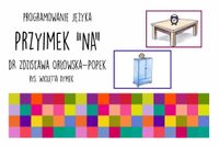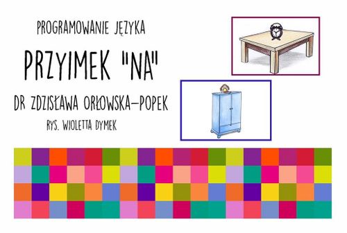 Zestaw ćwiczeń ułatwiających dzieciom posługiwanie się wyrażeniami przyimkowymi. Proponowany materiał umożliwia właściwe opanowanie systemu językowego. Dziecko uczy się zastosowania przyimków i odmiany rzeczowników. Dzięki ćwiczeniom z tym materiałem dziecko przygotowuje się do rozumienia czytanych tekstów. Przyimek na w sytuacjach przedstawionych na obrazkach łączy się z rzeczownikiem w miejscowniku. To jeden z przypadków, który podczas budowania systemu językowego powinien zostać wprowadzony i utrwalony w komunikacji, co z pewnością umożliwi zebrany tu materiał.Przedstawione na obrazkach sytuacje są bliskie dzieciom:NA SZAFIE PIŁKA, LALA, MIŚ, AUTO, ZEGARMają one zachęcać do czytania globalnego oraz tworzenia wypowiedzi. Dziecko uczy się rozumienia pytań: gdzie? na czym? oraz udzielania odpowiedzi dzięki obrazkowi, etykietce lub słowu, które może zaistnieć, kiedy wcześniej wielokrotnie były odczytywane etykietki ze zdaniami lub tylko z wyrażeniami przyimkowymi.
