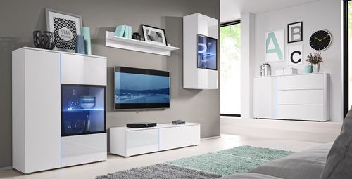 Zestaw składa się z 5 elementów: rtv S01, półki wiszącej S02, wtryny S03, witryny S04 oraz komody S07.