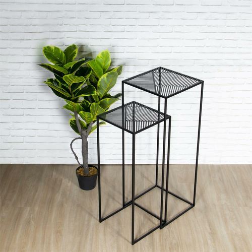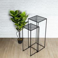 Zestaw Riga to industrialne stoliki, które mają nieograniczoną liczbę zastosowań. Ich ozdobne metalowe blaty, malowane proszkowo na czarno, będą idealnym miejscem na wszelkiego rodzaju ozdoby, doniczki z kwiatami lub wazon. Dzięki temu, że jeden stolik jest wyższy, a drugi niższy są one zarazem kompaktowe i możemy ustawiać je w dowolnych konfiguracjach. Podstawa stolika również jest metalowa oraz malowana proszkowo na czarno. Wymiary wyższego stolika: Wysokość- 90, Szerokość-34, Głębokość 34 Wymiary niższego stolika: Wysokość- 75, Szerokość-30, Głębokość 30 Wysokość: 90/75