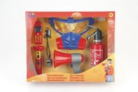 Zestaw 8950 zawiera same najpotrzebniejsze akcesoria strażackie. Przede wszystkim maska gazowa (imitacja) zakładana na głowę na materiałowych paskach regulowanej długości. Gaśnica ręczna, do której można nalać wody i pryskać nią poprzez naciskanie dźwigni oraz działający na baterię megafon. Mamy tu także prawdziwą latarkę - oczywiście w kolorze czerwonym, a także atrapę telefonu komórkowego, gwizdek i plakietkę, na której umieszczamy dane strażaka. Wszystko służy bezpiecznemu i sprawnemu przeprowadzeniu akcji strażackiej!