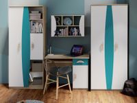 Zestaw składa się z 4 elementów: szafy T02. regału T03, biurka T08 oraz półki wiszącej T14.
