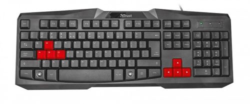 - PeĹnowymiarowa klawiatura z czerwonymi klawiszami wykorzystywanymi w grach
