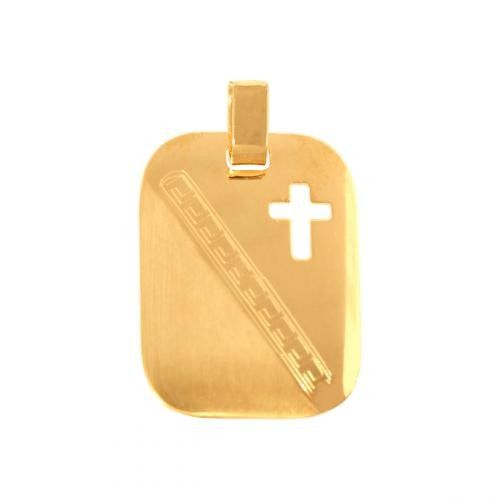 Blaszka do grawerowania z wyciętym krzyżykiem.Połączenie błyszczącego i matowego złota.Tył