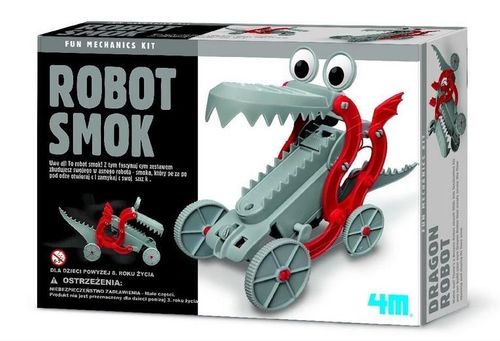 Mechanika i Zabawa to seria, która zdradza sekrety mechaniki. Dzięki niej dowiesz się m.in. dlaczego poduszkowiec utrzymuje się nad powierzchnią ziemi oraz jak zbudowane są silniki. Dzieci uwielbiają mechaniczne zabawki, które poruszają się, pływają, jeżdżą lub wspinają się. To innowacyjna seria zabawek, która edukuje i wprowadza dzieci w świat nauki i techniki!Uwaga! Nadchodzi Robot Smok! Z tym fascynującym zestawem zbudujesz swojego własnego robota-smoka, który pełza po podłodze otwierając i zamykając paszczę.Zawartość opakowania:- oczy, korpus, ogon i głowa robota-smoka- silnik- połączenia w kształcie litery S ze skrzydłami- 5 śrub- 2 zaślepki- szczegółowa instrukcjaZestaw nie zawiera wymaganych: baterii 1,5 V typu AA, małego śrubokrętu krzyżakowego.