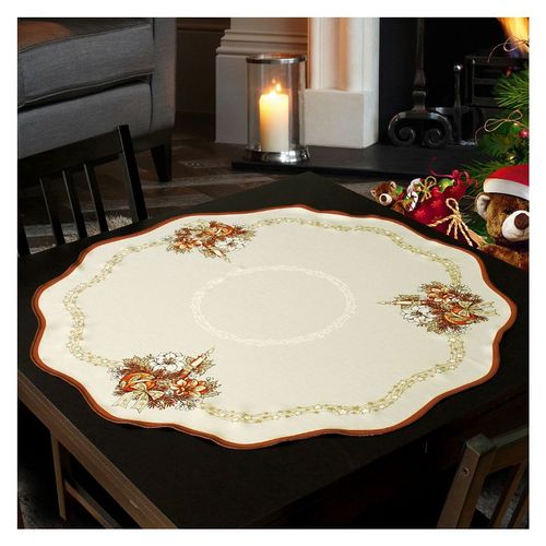 Dekoracyjna serweta, ozdobiona kolorowym wzorem świątecznym. Okrągła serweta z kolekcji Święta Bożego Narodzenia.