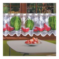 Dekoracyjna firanka w białym kolorze z malowanymi soczystymi arbuzami. Malowana firana żakardowa doskonale pasuje do wystroju wnętrza Twojej kuchni.