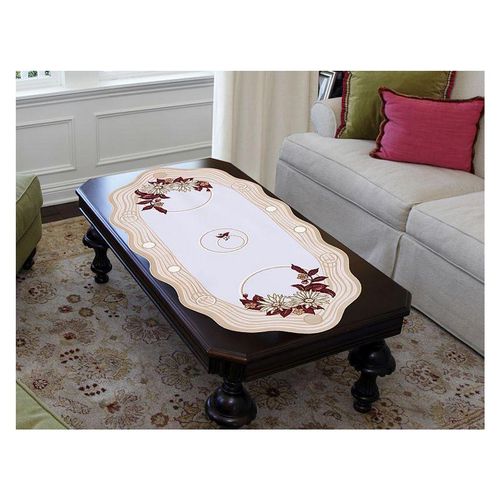 Dekoracyjny bieżnik w kolorze białym ozdobiony kolorowym wzorem kwiatowym.