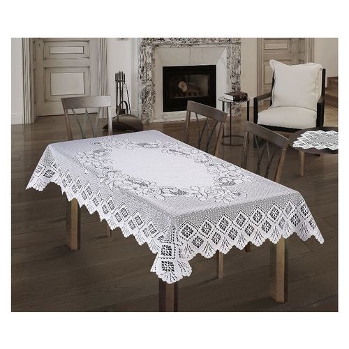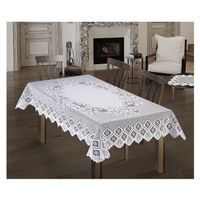 Prostokątny obrus w kolorze białym.