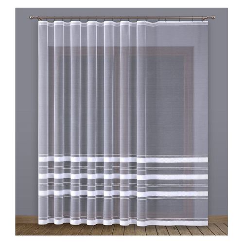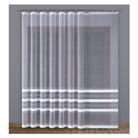 Elegancka firana na metry ozdobiona poziomymi pasami.
