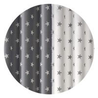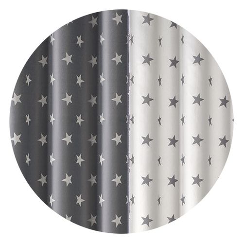 Zdjęcie przedstawia przykładową aranżację okienną tej samej obustronnej tkaniny Gwiazdki wraz z białą metrażową firanką Gwiazdki wysokość 250 cm.