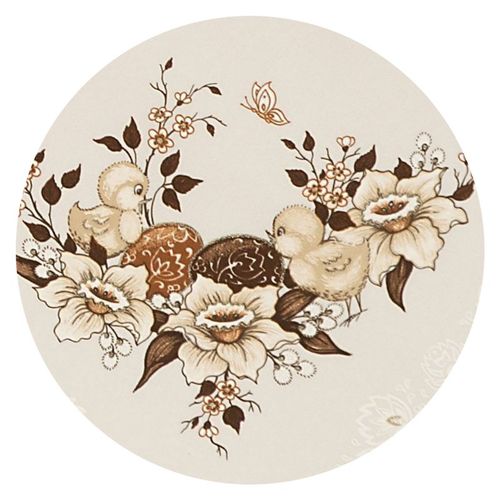 Dekoracyjny obrus w modnym kremowym kolorze, udekorowany świątecznym wzorem w brązowej kolorystyce. Prostokątny obrus z kolekcji Święta Wielkanocne.