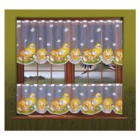 Ozdobna firanka z kolekcji Święta Wielkanocne. Firana żakardowa w kolorze białym z malowanymi kurczaczkami, zapewni świąteczną atmosferę w każdym domu.