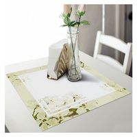 Nowoczesna dekoracyjna serweta w białym kolorze, upiększona drukowanym wzorem kwiatów jabłoni.