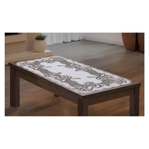 Żakardowy bieżnik w nowoczesnym łączeniu kolorów beżowego i brązowego.