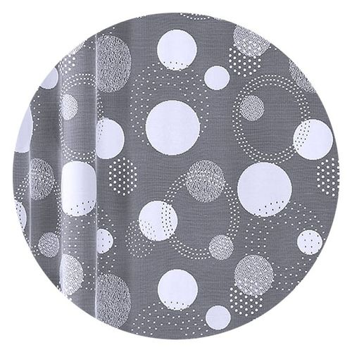 Metrażowa firana ozdobiona geometrycznym wzorem kół i kółeczek.