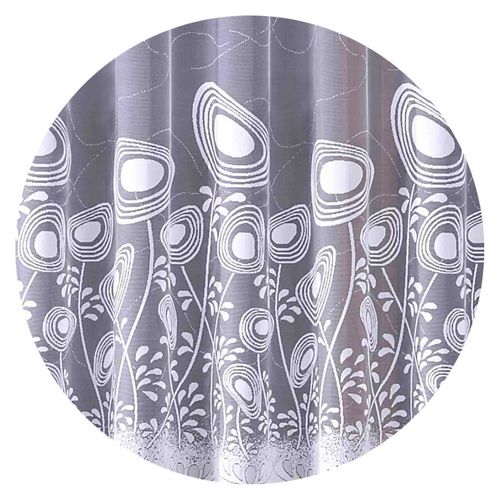 Dekoracyjna firana żakardowa w modnym białym kolorze. Metrażowa firanka ozdobiona efektownym kwiatowym motywem.