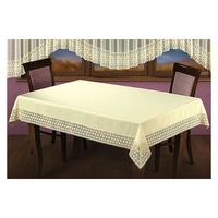 Kremowy plamoodporny obrus wykończony koronką żakardową.