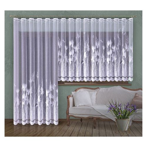 Firana żakardowa w śnieżnobiałym kolorze. Efektowny motyw chabrów nada Twoim oknom niepowtarzalny charakter.