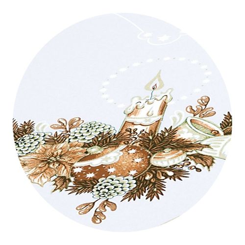 Nowoczesny ozdobny obrus, upiększony kolorowym, drukowanym wzorem świątecznym.