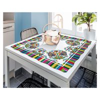 Nowoczesna serweta w białym kolorze, upiększona kolorowym wzorem ludowym.