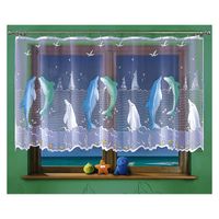 Żakardowa firanka w kolorze białym z malowanym motywem morskim.
