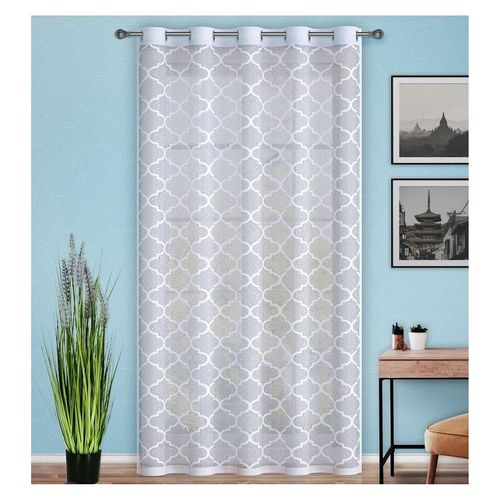 Efektowna firana ozdobiona ażurowym meksykańskim wzorem, w eleganckim białym kolorze.